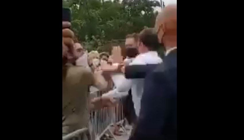 Tokom posete regiji Tan Lermitaž na jugoistoku zemlje, predsednik Makron prišao je masi građana da ih pozdravi, a Tarel je zgrabio predsednika za ruku i ošamario ga po licu, ponavljajući frazu poznatu poštovaocima Francuske monarhije, a pre nego što je predsedničko obezbeđenje intervenisalo.