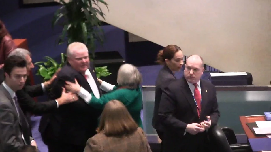 Sastanak Gradskog veća u Torontu pretvorio se u potpuni fijasko kada je gradonačelnik Rob Ford oborio članicu Gradskog veća Pem Mekkonel dok je trčao po sali.
