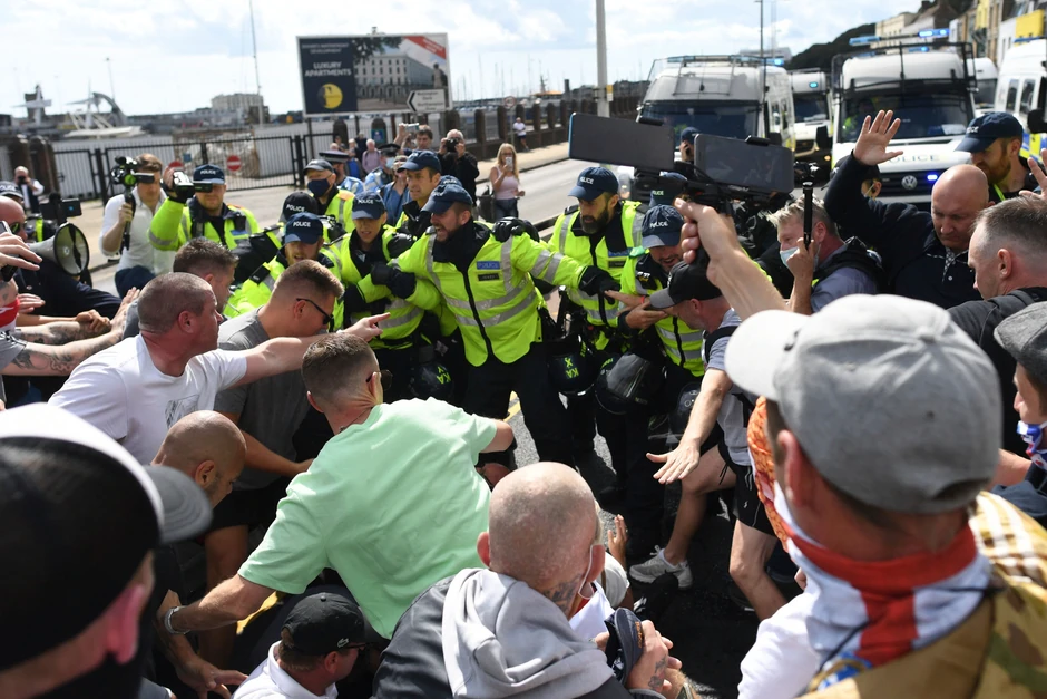 Pristalice pokreta krajnje desnice sukobile su se danas sa policijom u engleskoj luci Dover, gde je proteklih meseci stiglo više hiljada migranata nakon što su malim čamcima prešli Lamanš.