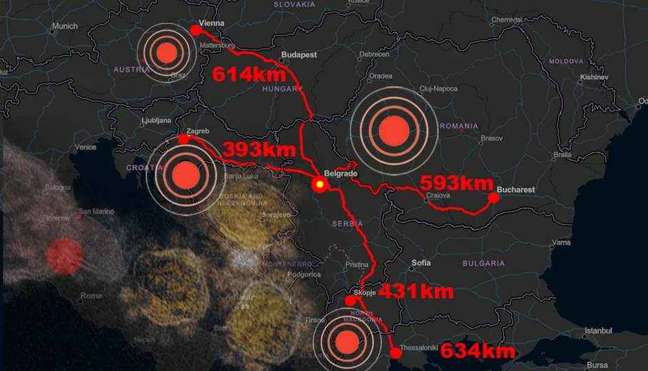 Od balkanskih država u kojima je zabeleženo prisustvo vrusa tu su Hrvatska, Makedonija, Rumunija i Grčka, pa je korona virus trenutno na samo 393 kilometra od Beograda, koliko iznosi razdaljina između srpske i hrvatske prestonice.