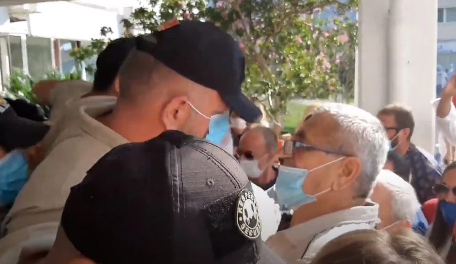 Privatno obezbeđenje nije dozvolilo najstarijem odborniku Gojku Liješeviću (75) (Demokrate) da uđe u zgradu Opštine, nakon čega je počeo pokušaj probijanja kordona.