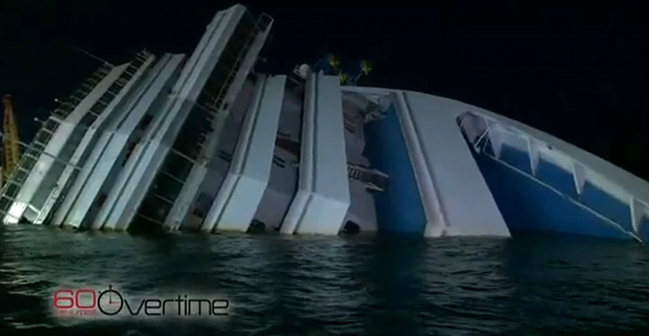 Snimak koji je prikazan na televiziji Si-Bi-Es Njuz prikazuje nekadašnju palubu, na kojoj su se putnici obično sunčali, kako stoji okrenuta na stranu, dok je bazen na brodu do pola u moru.