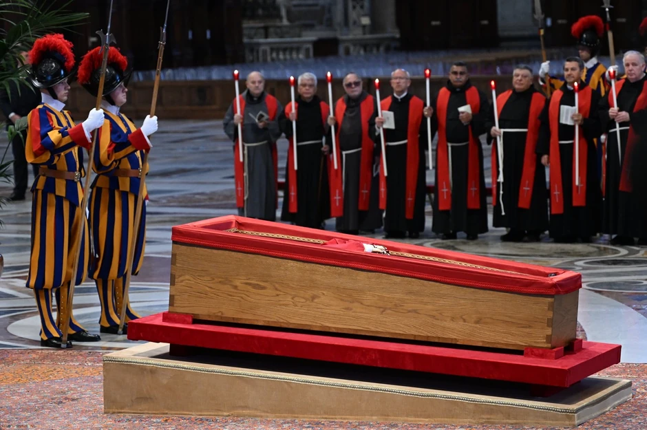 Nakon toga, kovčeg je u pratnji Švajcarske garde, prenet kroz Pijaca Santa Marta i Pijaca dei Protomartiri prema bazilici, uz zvuke zvona koja su se oglasila u njegovu čast, prenosi BBC.