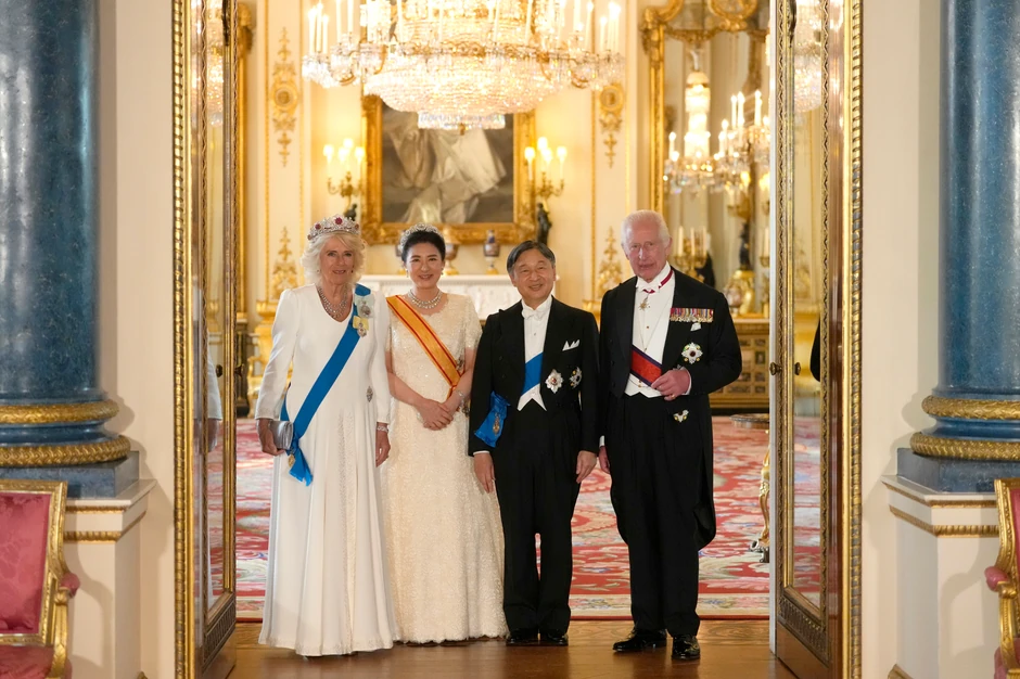 Engleski kralj Čarls priredio je raskošni doček i banket za japanski carski par u Bakingemskoj palati, uz zdravicu "Dobrodošli ponovo u Britaniju".
