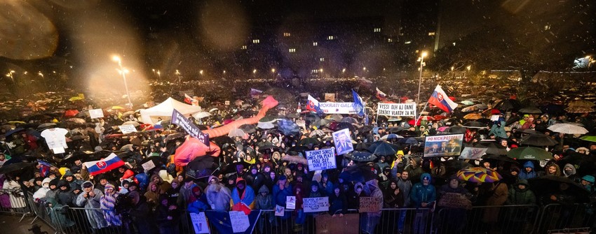 Mitinzi i marševi su održani širom zemlje, a demonstranti su na Trgu slobode u kišovitoj Bratislavi skandirali: "Dosta nam je Fica", "Želimo promene" i "Ostavka". Na jednom transparentu bio je ispisan citat pokojnog čehoslovačkog i češkog predsednika Vaclava Havela, koje su postale moto Plišane revolucije: "Istina i ljubav moraju prevladati nad lažima i mržnjom", piše "Asošijeted pres" (AP).