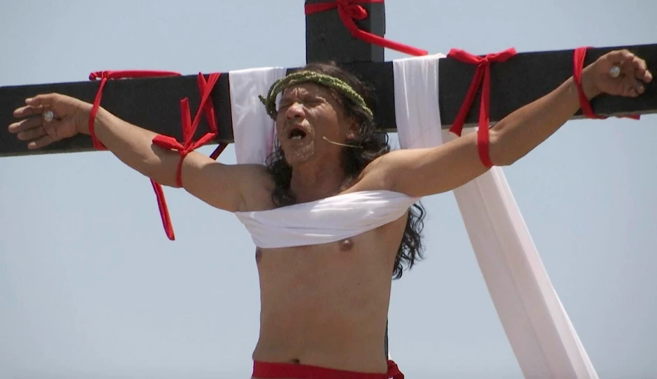 Posmatrači na "vojnike" viču da to ne rade, a drugi se slamaju u suzama. Oko 10.000 Filipinaca okuplja se da bi gledalo krstov put, dok oni koji se žrtvuju koračaju prema brdu na kojem će biti podignuta tri velika krsta.