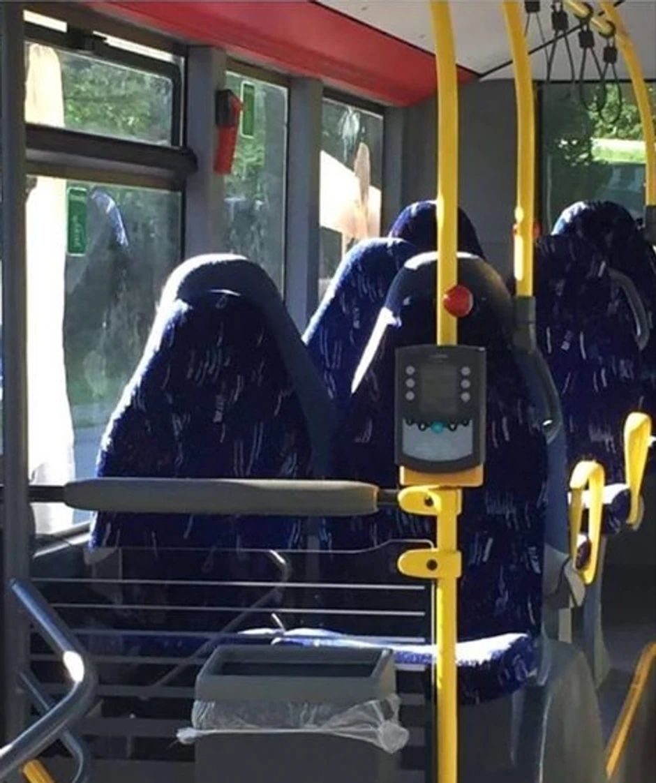 Na nalogu norveške antiimigrantske grupe na Fejsbuku stoji fotografija “grupe muslimanki obučenih u burke u autobusu“ na kojoj su zaista samo prazna sedišta.