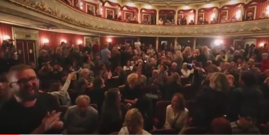 Nekolicina, kako pišu lokalni mediji, simpatizera ili članova HSP-a kupila je karte za predstavu i ušla u dvoranu da bi pokušala da minira izvođenje i napravi incident.