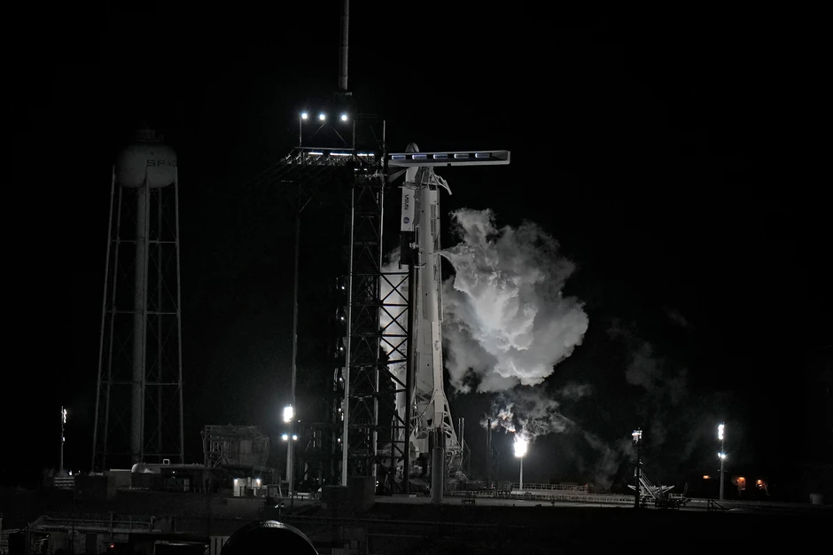U kapsuli na vrhu rakete "falkon" bila su dvojica astronauta NASA, jedan ruski kosmonaut i astronaut iz Ujedinjenih Arapskih Emirata.