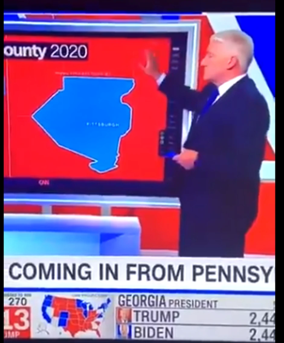 Tokom programa uživo na Si-En-Enu na velikom ekranu prikazana je mapa trenutnog preseka glasova.