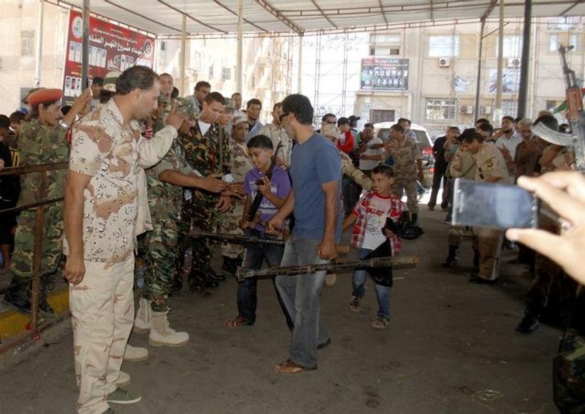 Stotine Libijaca izašlo je na glavni trg u Bengaziju kako bi predalo oružje nakon poziva koji je vojska uputila građanima početkom ovog meseca.