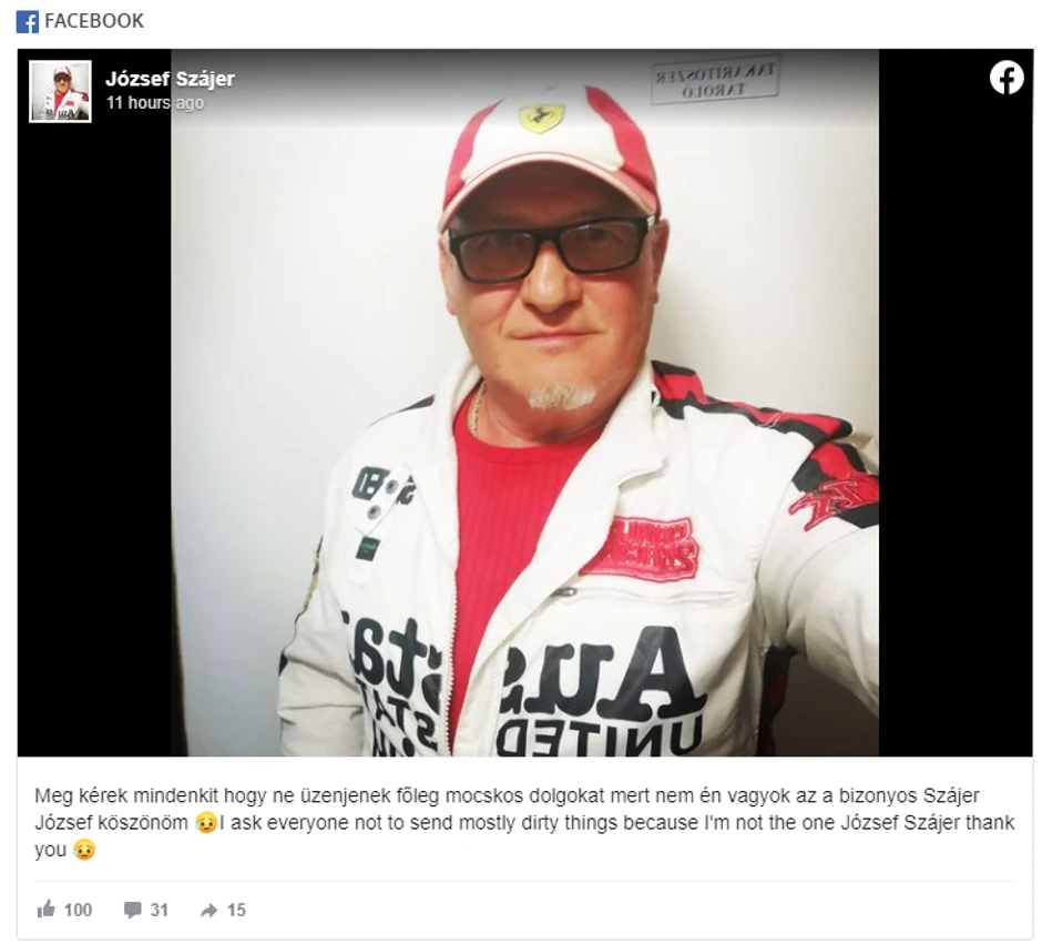 - Sve vas molim da mi ne šaljete "prljave" stvari, ja nisam taj Jožef Sajer. Hvala vam - napisao je očajan čovek na "Fejsbuku".