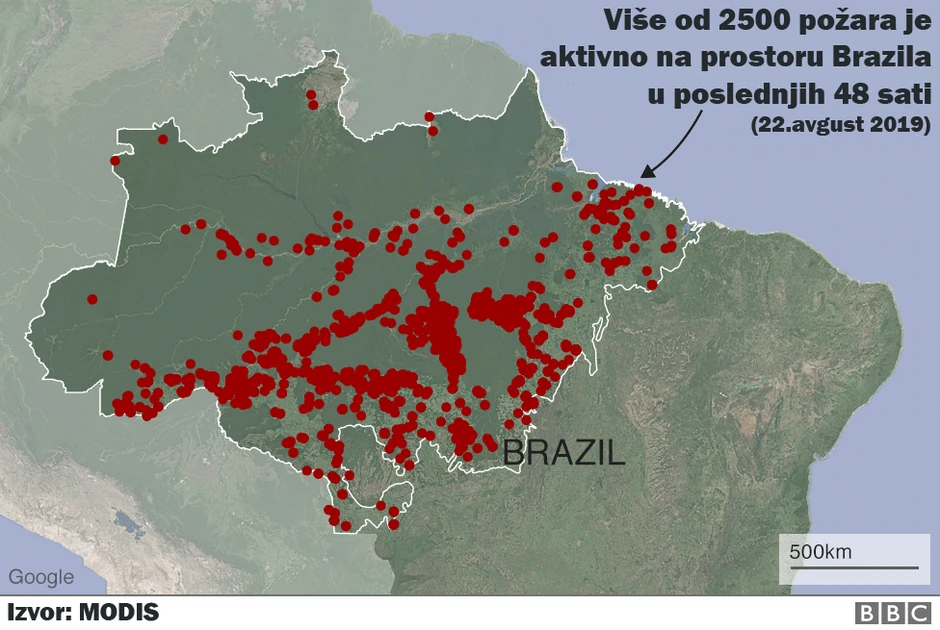 Zvanične brojke govore da je preko 75.000 šumskih požara zabeleženo u Brazilu u prvih osam meseci ove godine, što je najveća brojka od 2013. Radi poređenje, 2018. je bilo 39.759 požara.