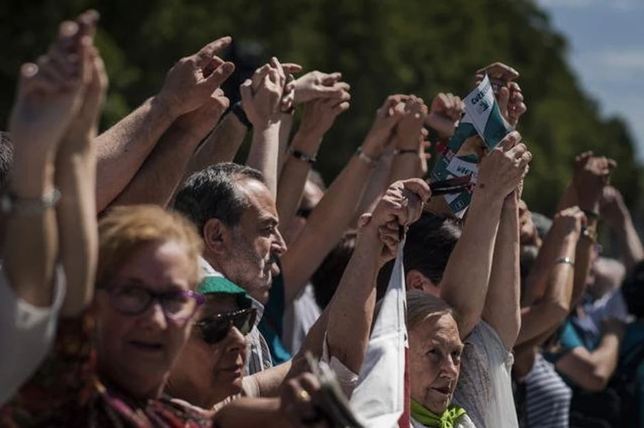 Okupljeni su nosili baskijsku zastavu u crveno-belo-zelenoj boji i držali su se za ruke od Duranga do Pamplone, koja se nalazi u susednom Navaru, ali kulturno i jezički pripada baskijskoj teritoriji.