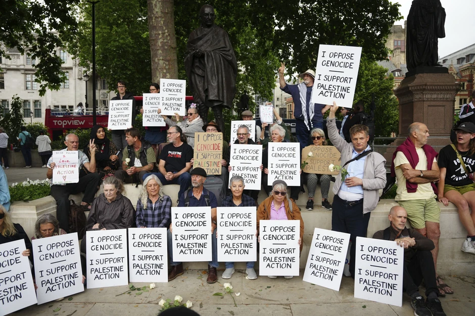 Veliki broj pripadnika policije danas je opkolio grupu demonstranata koji su nosili transparente "Ja se protivim genocidu. Ja podržavam Palestinsku akciju".