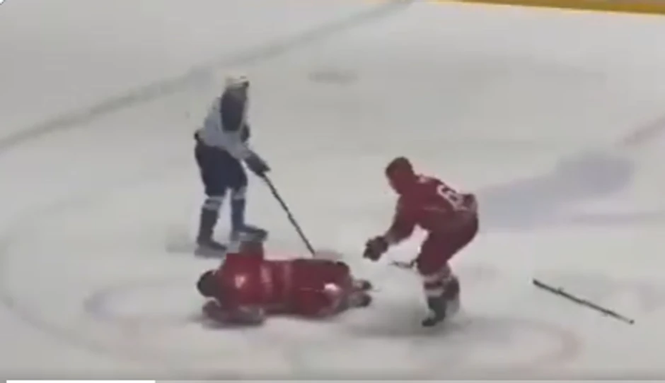 Na snimku se vidi kako igrač predsedničkog tima, broj 68, bivši beloruski hokejaški reprezentativac Jaroslav Čupris, slučajno udara Lukašenka u leđa, izazivajući njegov pad, prenosi Izvetsija.