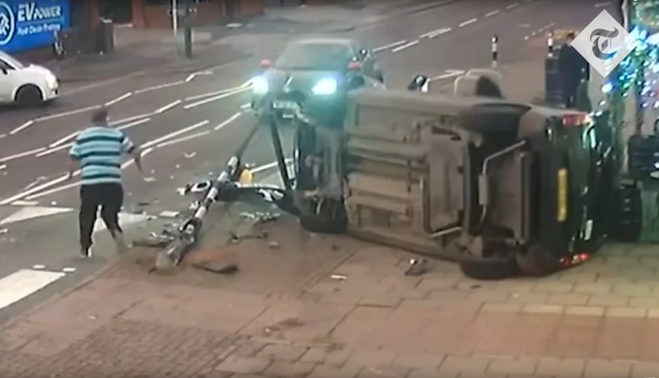Zastrašujući sudar dogodio se u subotu oko 16 časova u engleskoj regiji Zapadnom Midlendsu. Na stravičnom snimku koji je zabeležen sa nadzornih kamera vidi se majka koja gura svoje dete u kolicima, kada automobil skreće sa puta.