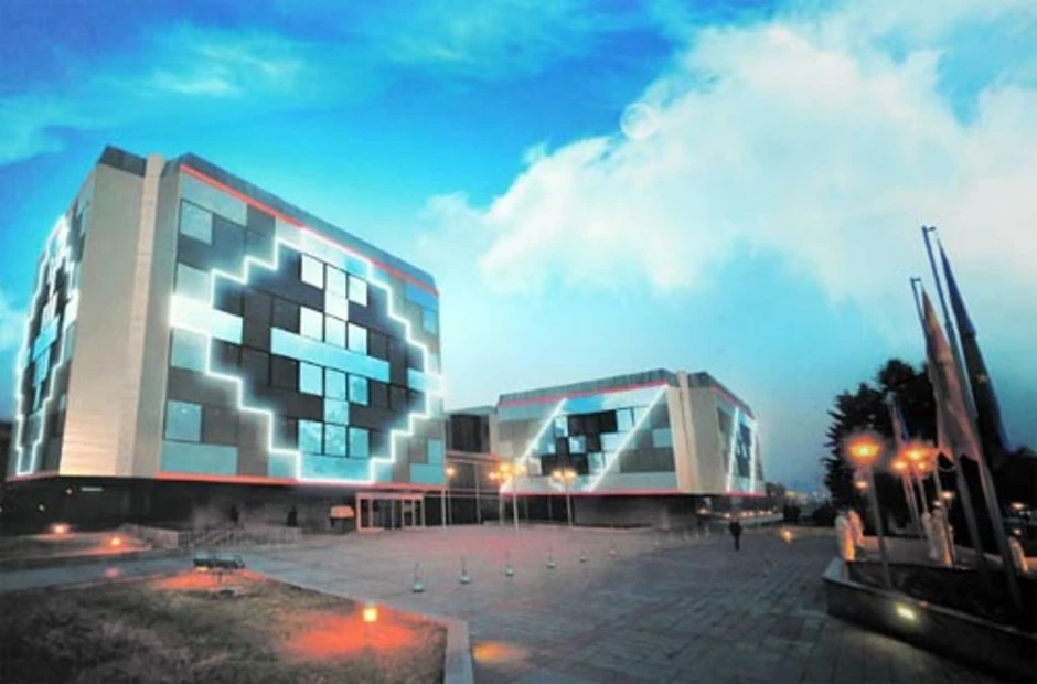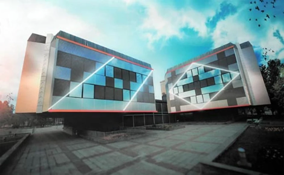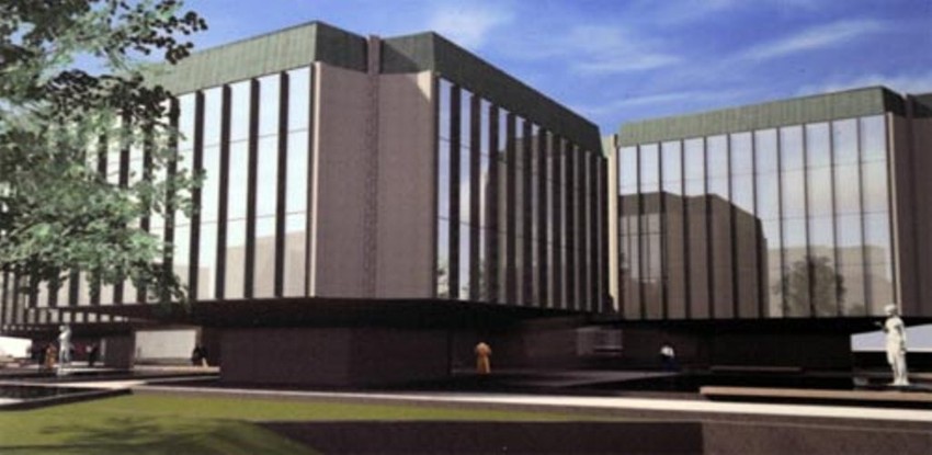 Zgrada vlade je u trenutku napada projektilima bila prekrivena skelom i platnima na kojima može da se vidi budući izgled ove institucije.