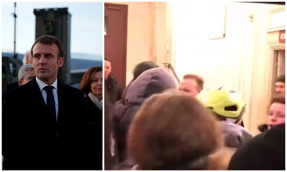 Na snimcima objavljenim na društvenim medijima čuje se kako demonstranti pozivaju Makrona da podnese ostavku i vidi se kako u jednom trenutku pokušavaju da upadnu sinoć u pozorište "Theatre Des Bouffes du Nord", gde su francuski predsednik i njegova supruga gledali predstavu "La Mouche".