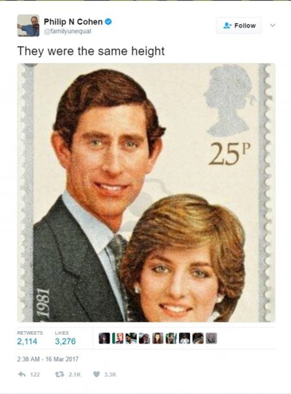 Naime, Čarls i Dajana bili su iste visine, a na ovoj fotografili ona je za glavu niža od njega. I ovo nije jedina takva fotografija; ima mnogo takvog namernog obmanjivanja, pre svega bezrazložnog, smešnog i beskorisnog, piše "Hafington post".