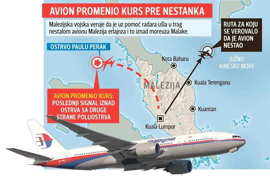 Potom je nestao sa radara, a poslednja poznata lokacija bila je kod grada Kota Baru, što je potvrđeno i navodima stanovnika istočne obale koji su rekli da su videli velika svetla i avion kako leti na 1.000 metara iznad nivoa mora kod Kota Barua, podseća “Malezija insajder”.
