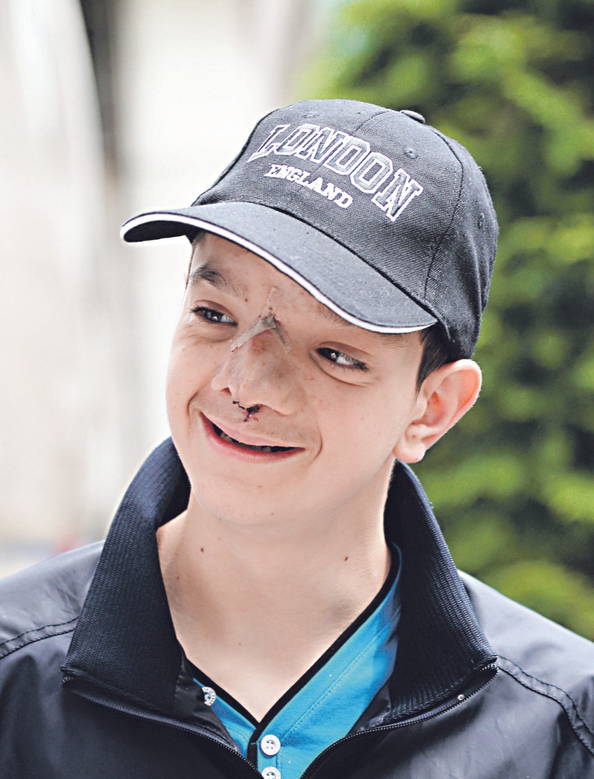 Stefan Savić (15) iz Laktaša u RS, koji se od rođenja bori sa teškim deformitetom lica, vratio se juče sa komplikovane operacije u Londonu srećan i nasmejan.