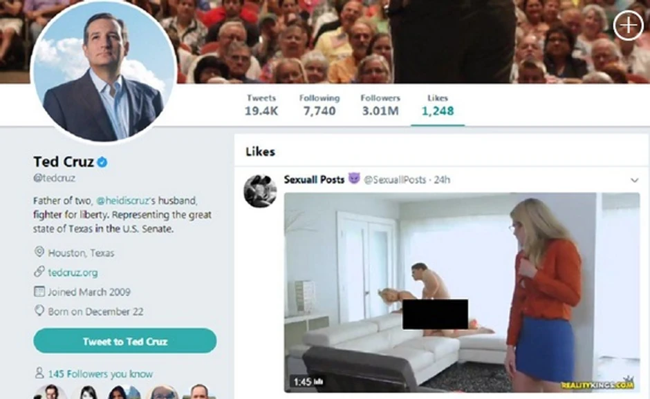 Senator Ted Kruz, republikanac iz Teksasa, jedan je od 400 korisnika “Tvitera” koji su lajkovali dvominutni pornografski snimak sa @SexuallPosts.