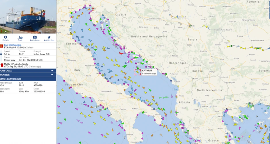 Brod Katrin se trenutno nalazi blizu hrvatskih teritorijalnih voda