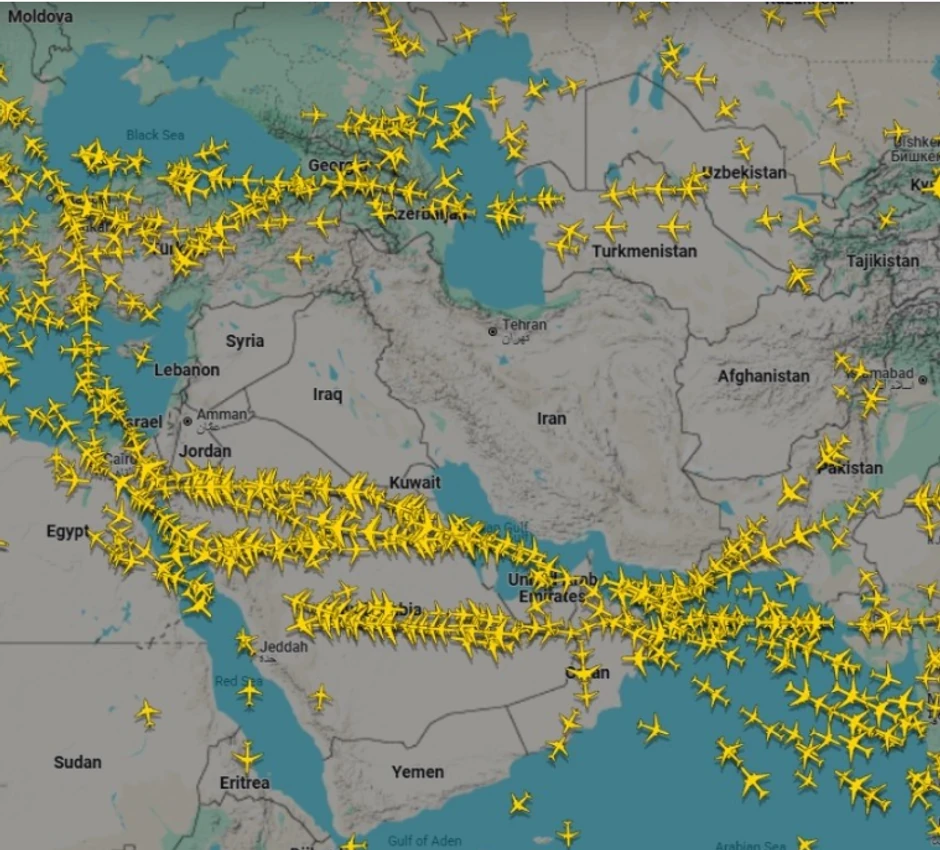 S obzirom na to da su ruski i ukrajinski vazdušni prostor, takođe, zatvoreni za većinu aviokompanija zbog višegodišnjeg rata, Bliski istok postao je važnija ruta za letove između Evrope i Azije. Usred raketnih i vazdušnih napada tokom poslednjih deset dana, aviokompanije su leteli na sever preko Kaspijskog jezera ili na jug preko Egipta i Saudijske Arabije.