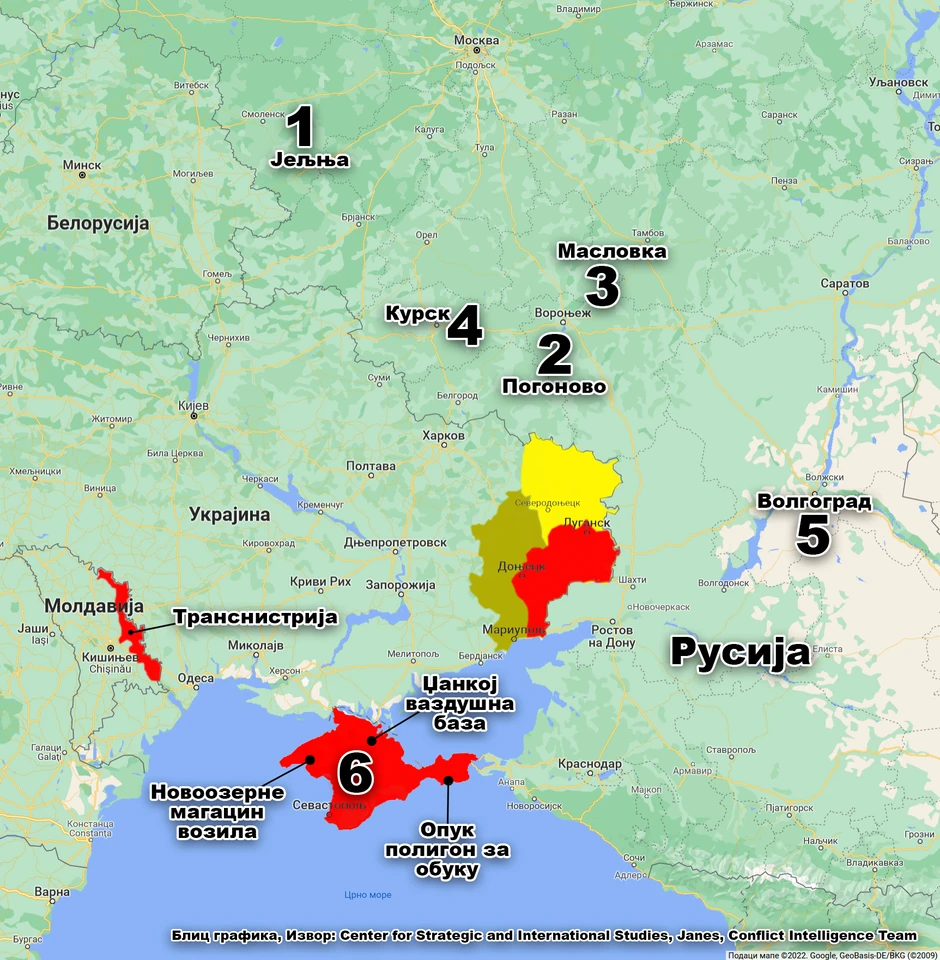 - Jeljnja: Jedinice 41. kombinovane vojske identifikovane su na satelitskim snimcima od 9. novembra, što ukazuje na preraspoređivanje sa poligona Pogonovo.