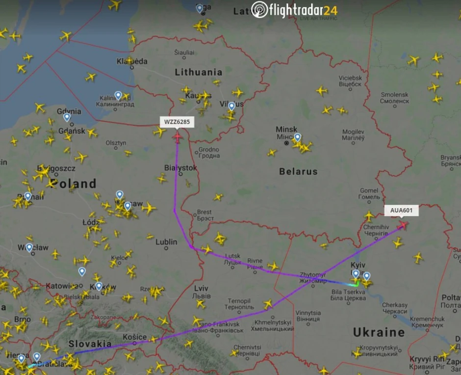 Kako piše "Flightradar24", aviokompanije "Britiš ervejz", "Er Frans" i KLM su svoje letove, koji su inače išli preko Belorusije, preusmerile drugim putevima.