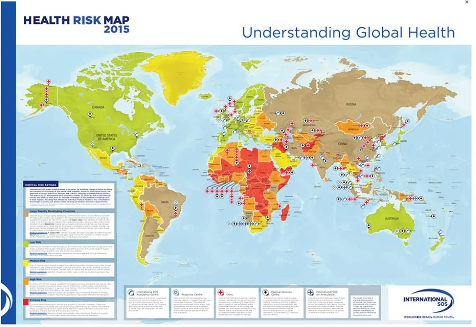 Različite države označene su u četiri kategorije, zavisno od rizika sa kojim se suočavaju osobe koje zatraže medicinsku pomoć.
