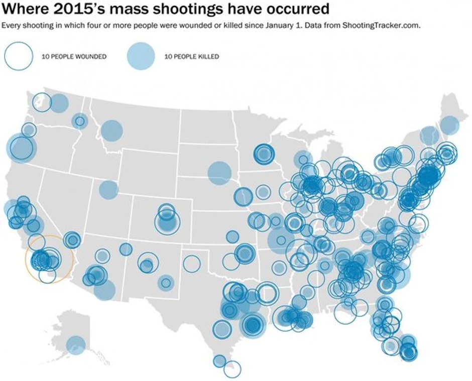 Samo od početka ove godine, u Americi se dogodilo više od 350 masovnih pucnjava. Masakr u San Bernardinu, u kome je stradalo 14 ljudi, tako nije ništa novo, ali je jedinstven po tome što su ga izveli muž i žena.