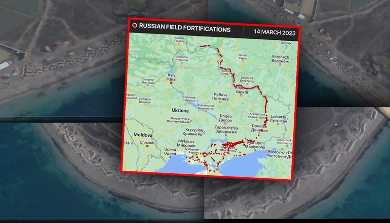 Na Tviteru je ove nedelje objavljena mapa ruskih utvrđenja na bojnom polju koja pokazuje da ruska vojska priprema moćnu odbranu za očekivanu ukrajinsku kontraofanzivu. Na osnovu mape se može zaključiti da Rusi očekuju ukrajinsku ofanzivu iz pravca Zaporožja i Melitopolja do Krima. Na granici poluostrva je skoncentrisan veliki broj odbrambenih snaga.