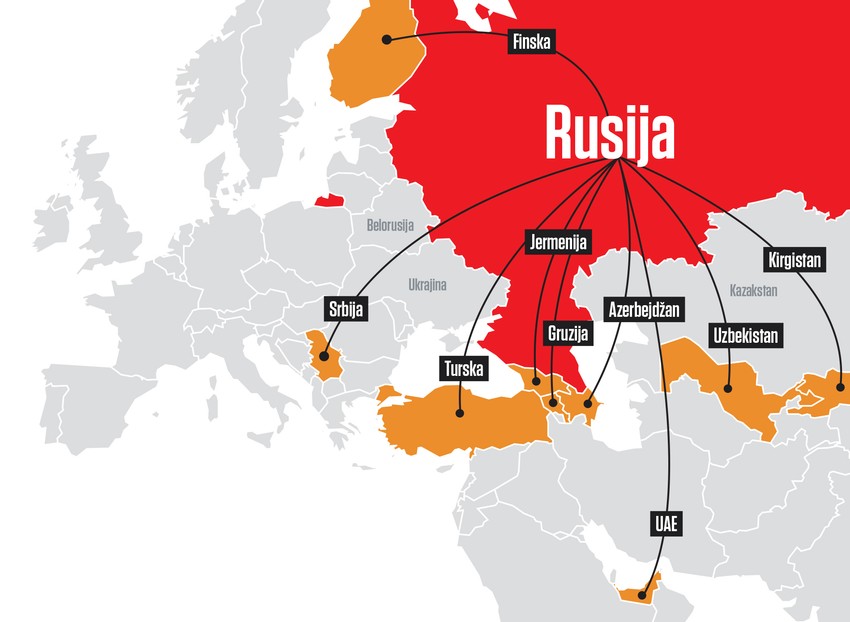Prema “Gardijanu”, Rusi mogu da odu kopnenim putem do Finske, Gruzije i Mongolije, a letovima do Orenburga u Kazahstanu, Biškeka u Kirgistanu, Taškenta u Uzbekistanu, Istanbula i Antalije u Turskoj, Dubaija u Ujedinjenim Arapskim Emiratima, Jerevana u Jermeniji.