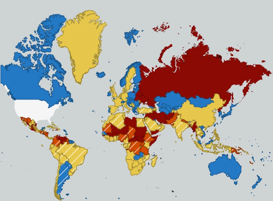Države poput Ukrajine i Belorusije označene su kao visoko rizične za putovanje