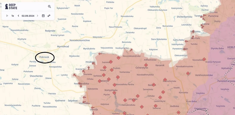 “Telegram” kanal “Dip Stejt” koji prati pomeranja na liniji fronta, prikazao je obim ruskog napredovanja ka istočnom ukrajinskom gradu Pokrovsku.