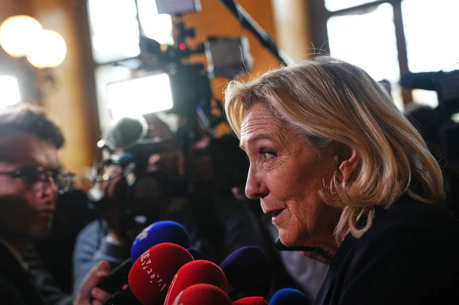Prvostepenom presudom u slučaju evropskih parlamentarnih asistenata, Marin Le Pen je osuđena na petogodišnju zabranu kandidovanja na javne funkcije uz privremenu izvršnost presude. Suđenje po žalbi održaće se od 13. januara do 12. februara 2026. godine.