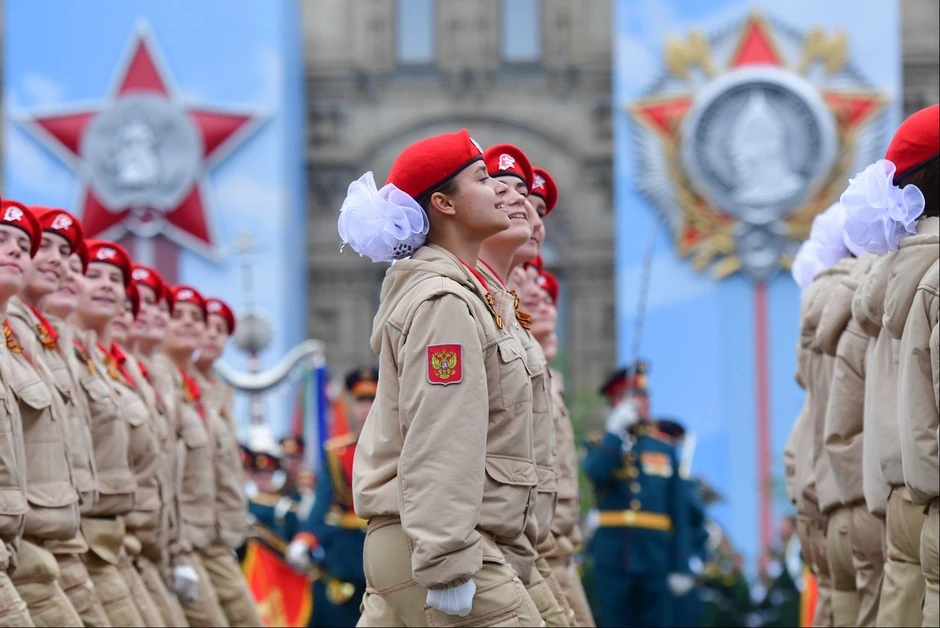 Deca starosti četiri godine, obučena u ruske vojne uniforme, obučavana su da marširaju uoči velike vojne parade u Rusiji, povodom Dana pobede nad fašizmom. Jedna grupa dečaka i devojčica starosti oko šest godina čak je paradirala sa modelima američke puške M16.