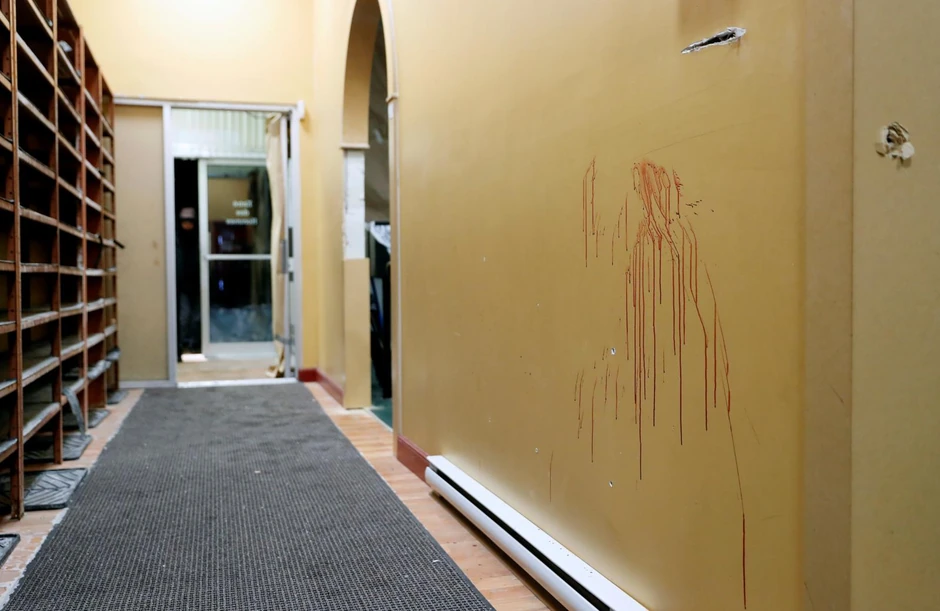 Na fotografijama se vidi velika količina krvavih mrlja, zidovi, prozori i komadi nameštaja puni rupa od metaka.