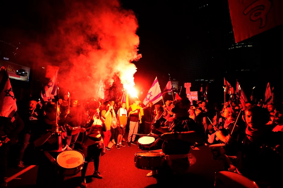 Demonstranti su držali izraelske zastave, baklje i transparente sa različitim porukama protiv reforme pravosuđa.