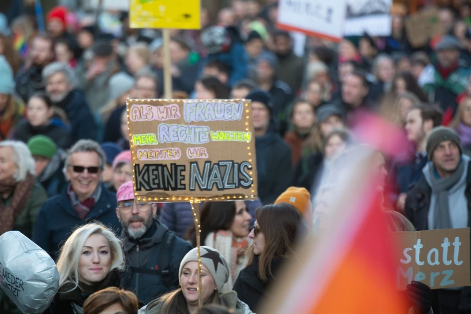 Mnogi demonstranti su se fokusirali na kandidata CDU za nemačkog kancelara Fridriha Merca, koji je prošle sedmice nemačkom parlamentu predložio dva zakona protiv imigracije. Merc je, kako navode, prekršio dugogodišnje obećanje da neće sarađivati sa krajnje desničarskom strankom Alternativa za Nemačku, kada je prihvatio njene glasove kako bi usvojio svoj predlog za migraciju.