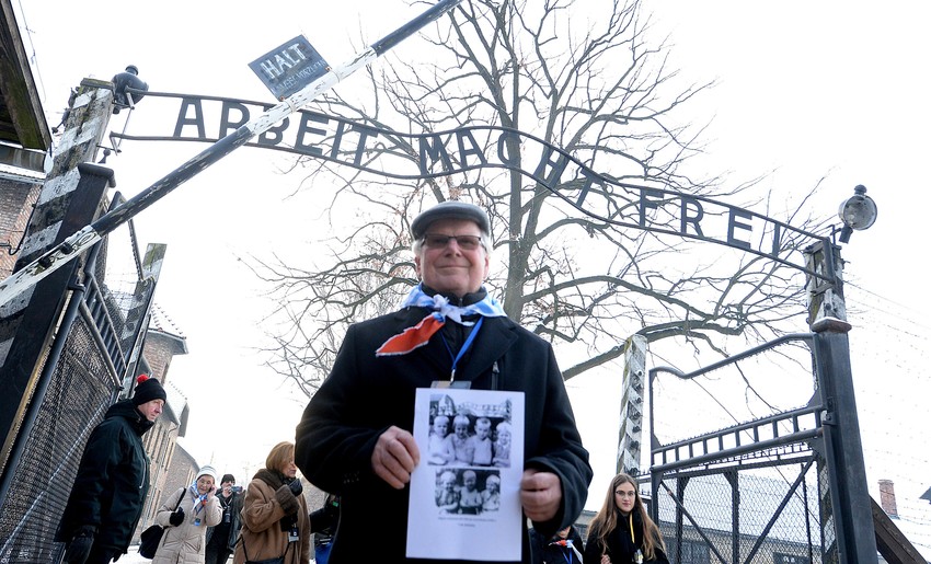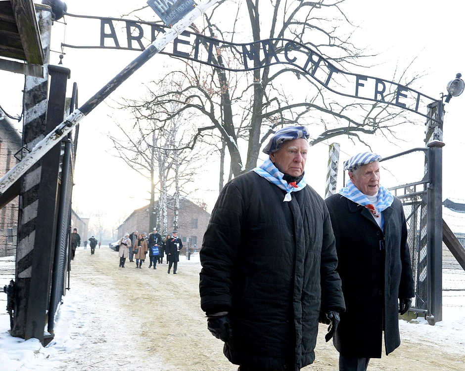 Preživeli bivši zatvorenici nekadašnjeg logora smrti Aušvic, na jugu Poljske, danas su, na Međunarodni dan sećanja na žrtve Holokausta, 27. januar, postavili cveće na Zid smrti.