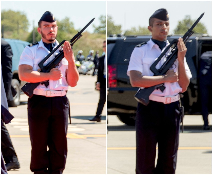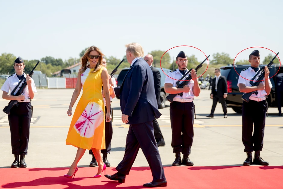 Oštro oko fotografa agencije AP zapazilo je i jedan zanimljiv detalj - trenutak kad su i vojnici iz obezbeđenja krišom gledali u suprugu američkog predsednika.
