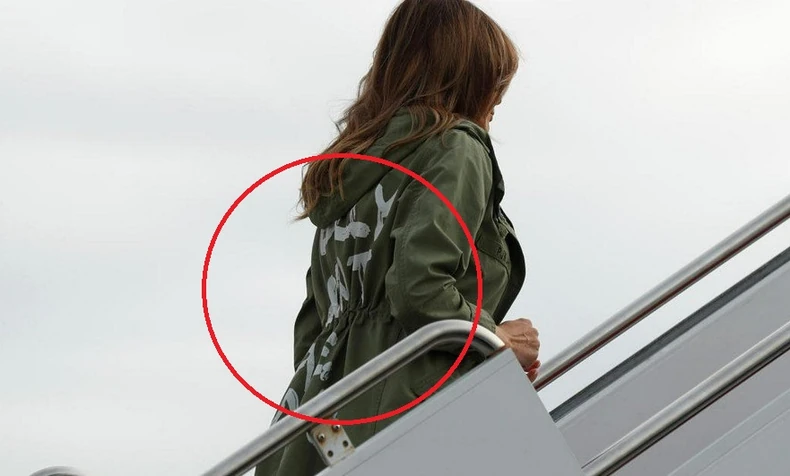 Melanija Tramp je na ulasku u avion kojim je letela u MekAlen, u Teksasu, bila u maslinasto-zelenoj jakni marke "Zara", piše Dejli mejl, s porukom ispisanom na leđima: "Zaista me nije briga, a vas?"
