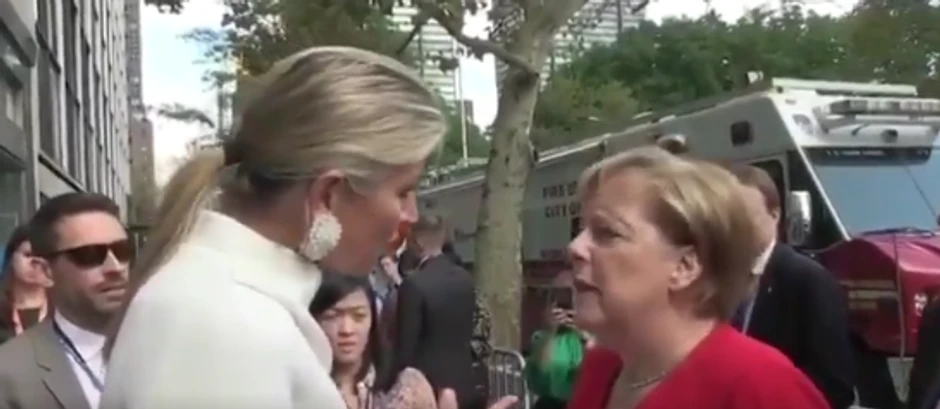 Nemačka kancelarka Angela Merkel, koja je u Njujorku učestvovala na zasedanju Generalne skupštine UN, prošetala se ulicom u pratnji obezbeđenja kada je slučajno naletela na holandsku kraljicu Maksimu. Pošto su se pozdravile i izljubile, proćaskale su na engleskom. Tada se dogodio mali nesporazum, koji je zabeležen na video-snimku.