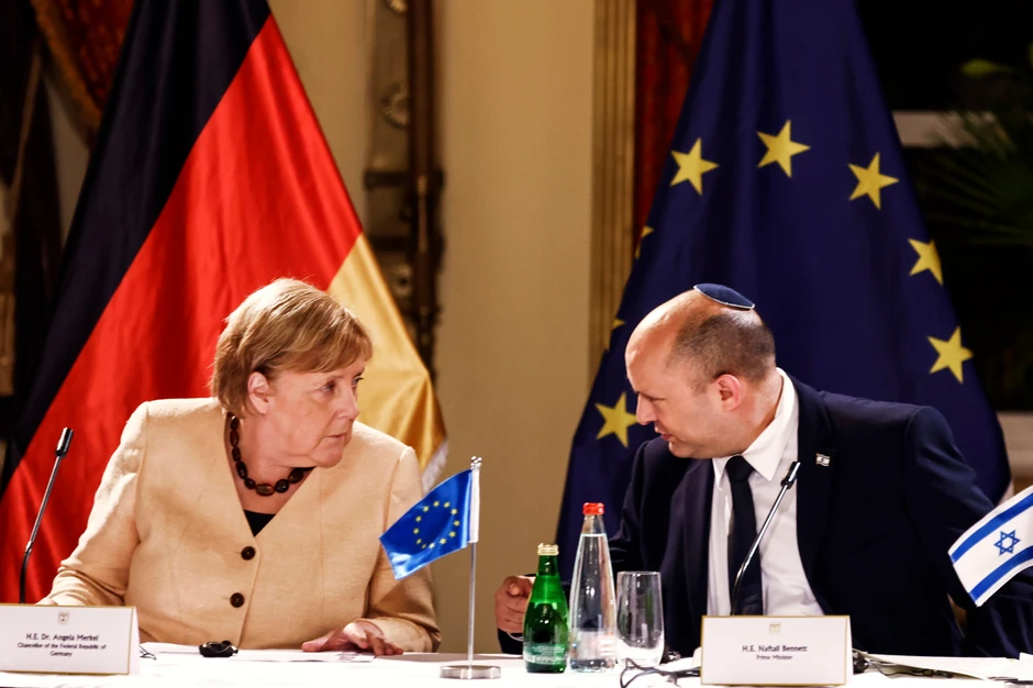 Novi izraelski premijer Naftali Benet je protiv formiranja palestinske države na teritorijama pod kontrolom Izraela i odbija mirovne razgovore. On je, umesto toga, za pragmatičniji pristup smanjivanja tenzija kroz poboljšanje životnih uslova Palestinaca. Merkelova je pozdravila Benetove namjere, ali smatra da takav pristup neće biti dovoljan.