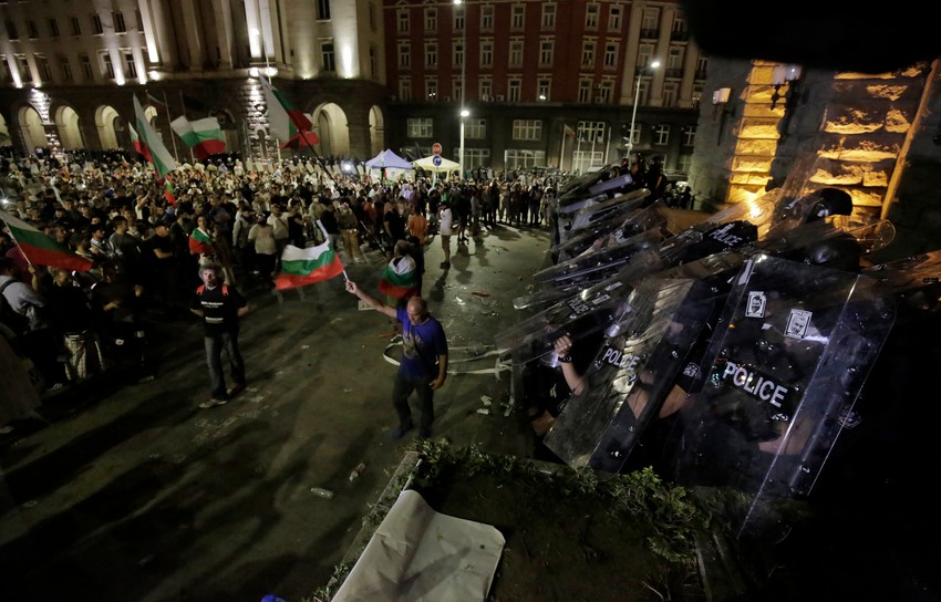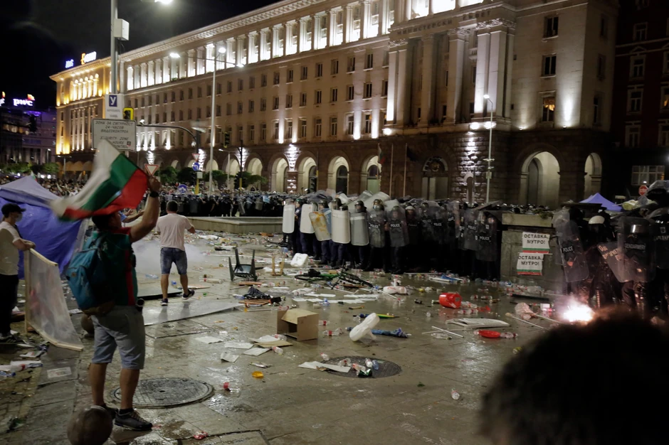 Oko 21 čas u sredu je grupa demonstranata na apel policije da prestane da krši javni red i mir odgovorila sa još većom agresijom, prenosi bugarska agencija Agerpres. Tada je policija za razbijanje demonstracija podelila oko 20.000 okupljenih na tri dela i izgurala ih sa trga.