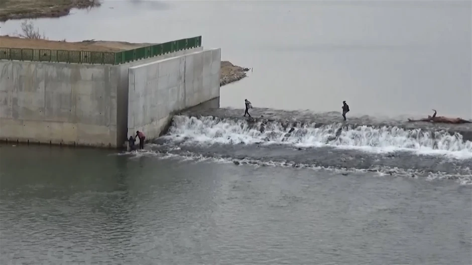 Na drugom snimku vidi se nekolicina migranata koji pokušavaju da uđu u Grčku preko vode, pešice prelazeći reku Evros: