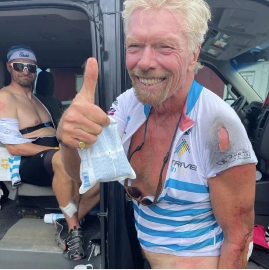 Britanski milijarder Ričard Brenson pokazao je svoje ozbiljne povrede nakon udesa sa biciklom nakon što su mu otkazale kočnice na dobrotvornoj trci.